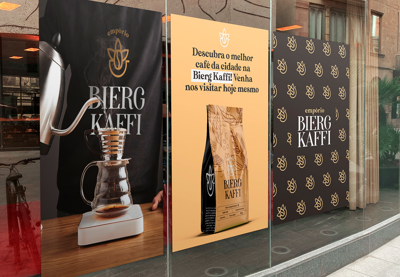 Bierg Kaffi é uma cafeteria localizada em Marechal Floriano. O conceito geral por trás da criação do logotipo envolve a combinação de dois conceitos normalmente considerados opostos, ou seja, o Moderno e o Clássico. O diferencial reside no conceito inicial de transmitir os valores da marca e incorporar elementos relacionados à sua área de atuação e ao público-alvo. Valores como aconchegante, convidativo, tradicional e simples serão incorporados em toda a identidade da marca, com elementos como café, xícara e decoração sendo proeminentes.